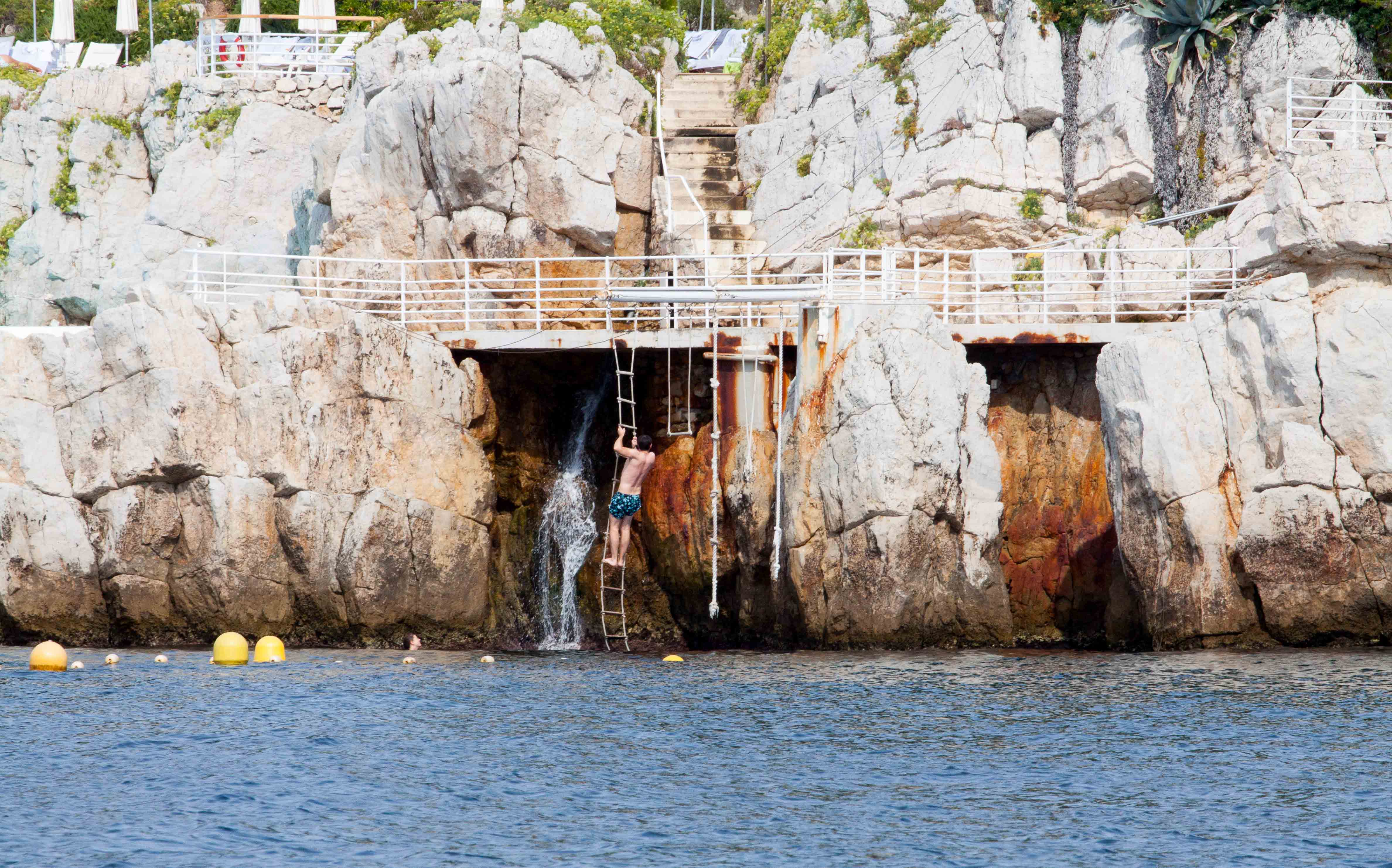 From there we walked down to Olivette to book our Pointu trip and were soon ushered onto Lucios’ Pointu. Lucio will feature in my series of Olivette People stories soon. He very kindly took us over to the Baie des Milliardaires via the Hotel du Cap. On the way passing the many luxury villas dotted along the coastline. The Cap looks so different from the Sea. Even though I have been around it on a boat many times I still always end up seeing something new.